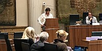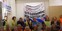 Bewoners van de Markermeerdijk wachten hun beurt af bij de inspreek-estafette van 12 insprekers bij de Statenvergadering over de dijkversterking