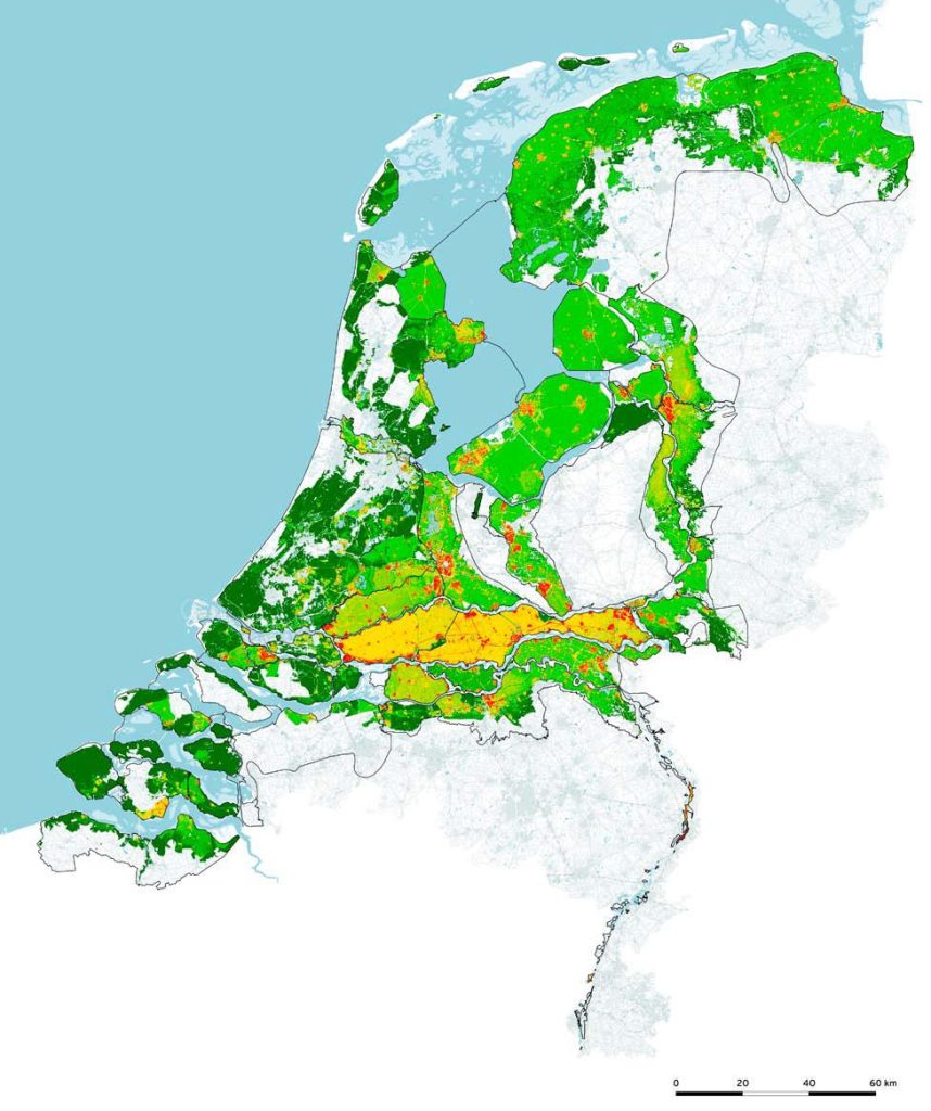 De risicokaart representeert het lokale individuele risico (LIR) voor het jaar 2015, waarbij de uitvoeringsprogramma’s HWBP2 en Ruimte voor de Rivier zijn uitgevoerd. Het LIR is de kans per jaar dat een persoon die zich op een bepaalde plaats in het dijkringgebied bevindt, overlijdt als gevolg van een overstroming van dit dijkringgebied.[…] De groene kleur in de kaart geeft aan dat een locatie relatief weinig risicovol is, de donkerrode gebieden zijn relatief risicovol.