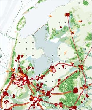 Anders dan voor de Natuur worden voor het Landschap van het IJsselmeer, dat nergens wettelijk beschermd is, zoals gebruikelijk geen echte uitgangspunten geformuleerd of het moet zijn het streven naar grootschalige clustering van de productie van duurzame energie door windmolens, eventueel in combinatie met zonnevelden. Dat verminderd de “ruimtelijke afwenteling” wordt gesteld..