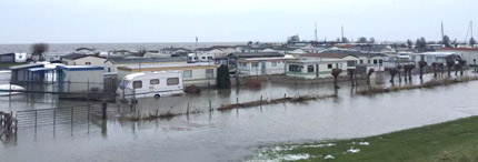 Het terrein van zwembad Warder en Reddingsstation Warder staat helemaal blank. Zandzakken moeten voorkomen dat het water de gebouwen in stroomt. Schipper Frans Walch van de KNRM verwacht dat de schade meevalt. Een probleempje is er wel. Zolang die zandzakken er liggen, kan de KNRM niet uitrukken. De camping van Edam staat voor het grootste deel blank.