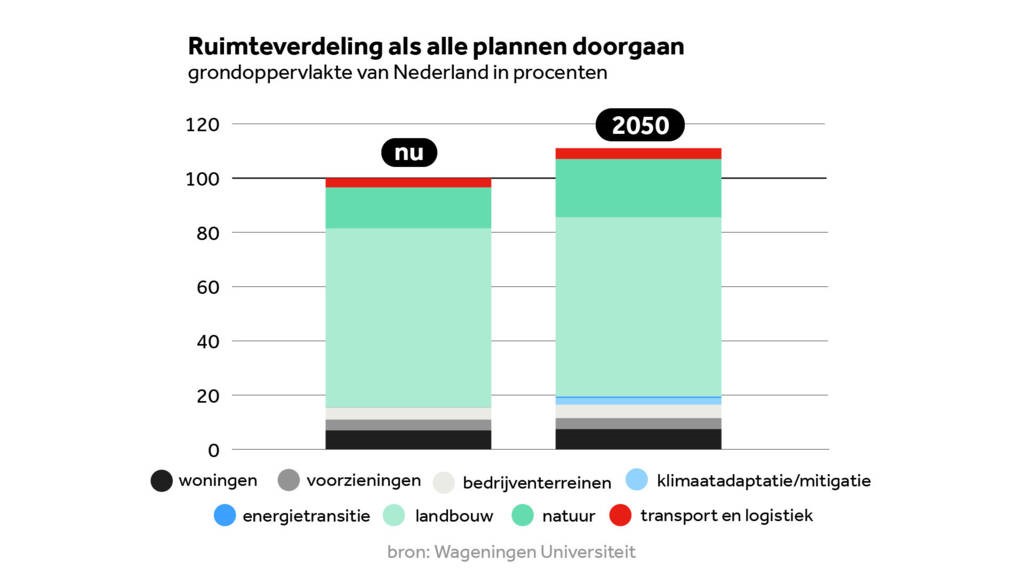 Volgens de deskundigen is Nederland in 2050 al ver over de grens van beschikbare ruimte heen:
