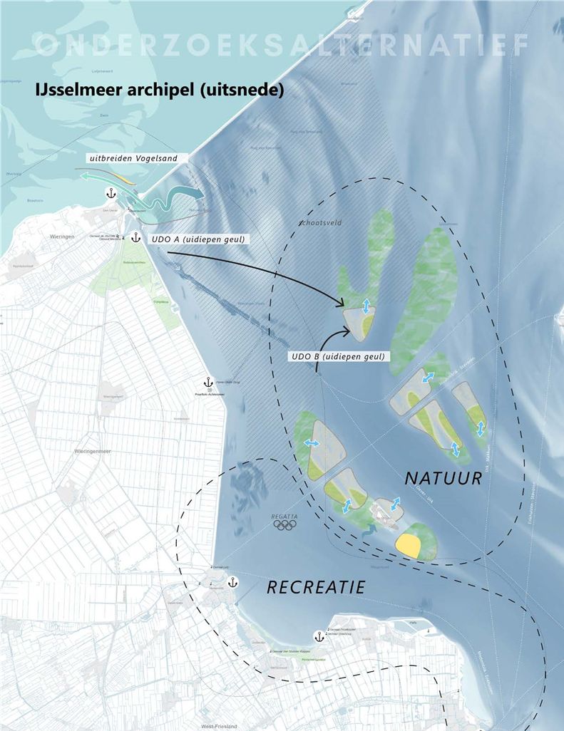 Met als referentie een kaart met ondieptes uit 1570 wordt in dit alternatief een beeld geschetst van een nieuw eilandenrijk met in de aan te leggen ondieptes en overgangszones rond de eilanden volop paai en leefgebied voor vissen en natuurlijk op de eilanden veel broedgebied voor vogels. Het ligt daarbij niet voor de hand in te zetten op grootschalig recreatief medegebruik wordt gesteld.
