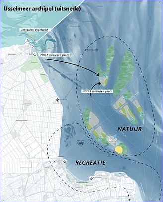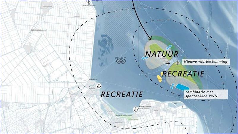 De andere heeft als naam ‘IJsselmeer Archipel’ en voorziet in de aanleg van tientallen kunstmatige eilandjes in het ruimere water ten noorden van Andijk en Wervershoof. Ze zijn in de eerste plaats bedoeld als een moeras voor flora en fauna. ,,Uitgangspunt is om de kust zoveel mogelijk vrij te houden van maatregelen die het gebruik van het vaargebied beperken”, aldus de plannenmakers.