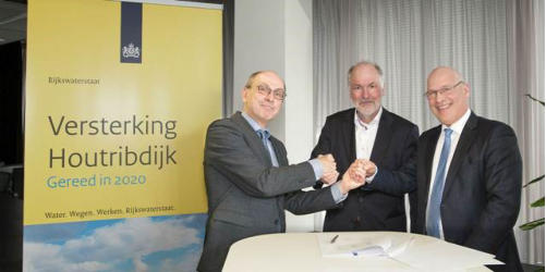 De dijk wordt deels traditioneel versterkt met steen en deels met zand. Dit biedt ook kansen voor natuurontwikkeling. In 2020 moet de versterking gereed zijn.Met het Design & Construct-contract (uitgevoerd volgens de Best Value-aanpak) is een aanneemsom van 90 miljoen euro gemoeid. Eind vorig jaar werd het contract voorlopig gegund aan de combinatie. De afgelopen periode hebben Combinatie Houtribdijk en Rijkswaterstaat benut om de aanbieding van de combinatie voor de dijkversterking te onderbouwen en te toetsen. De komende maanden bereiden de partijen de werkzaamheden verder voor. De directies van Boskalis en Van Oord zijn uiteraard blij met het resultaat van de gunningsprocedure. Hendrik Postma (directeur Boskalis Nederland) en Ronald Schinagl (directeur Van Oord Nederland): ‘We konden aantonen dat we beschikken over de juiste ervaring en slagkracht om de Houtribdijk tijdig en goed te verstevigen, met oog voor de belangen van de omgeving tijdens de uitvoering.’